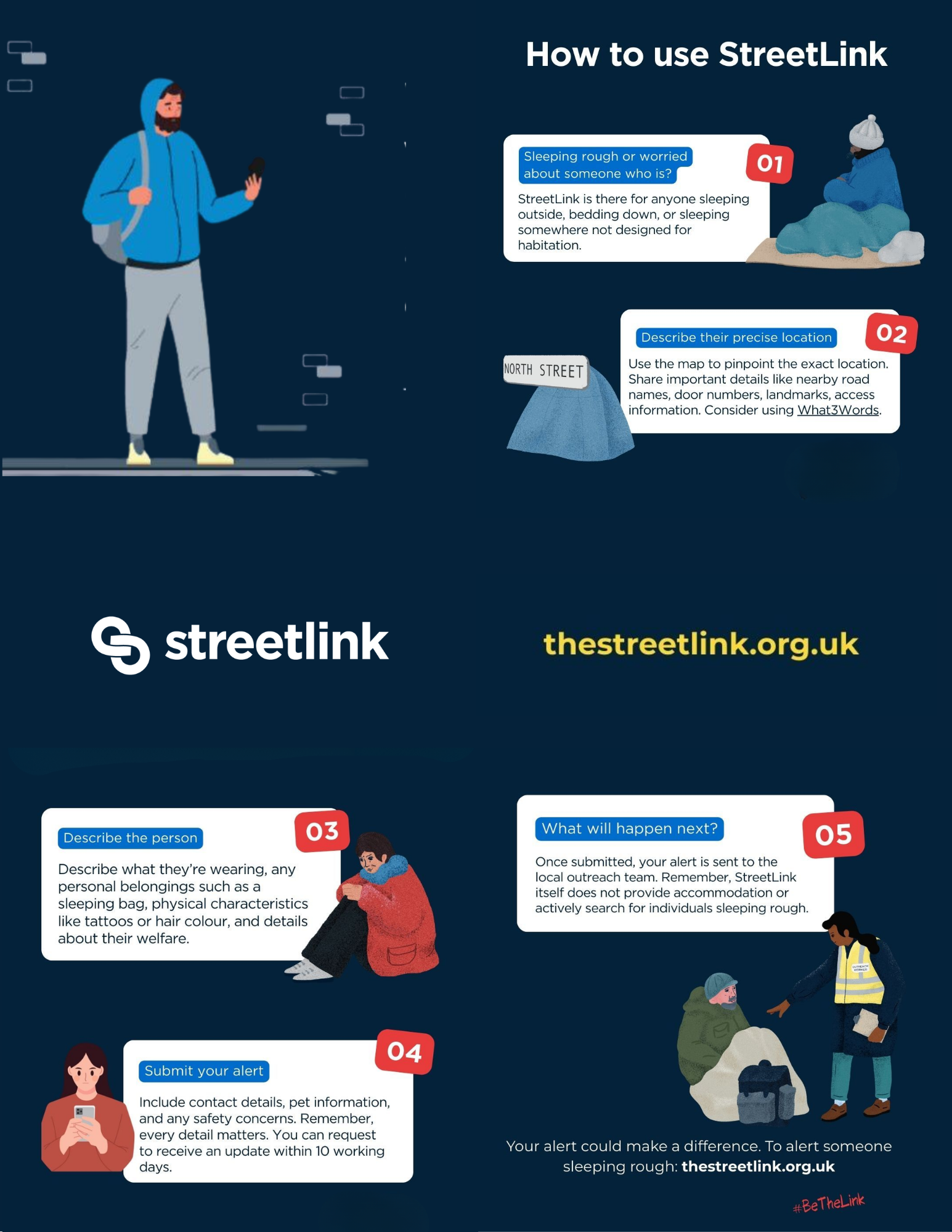 One practical action anyone in the West Midlands can take is to make a referral through StreetLink. StreetLink gives local outreach teams the information they need to try to find someone who may be sleeping rough, check they are safe and offer support. A clear referral does not just send a team to the right place. It can be the first step in someone being seen, listened to and supported onto a safer path.