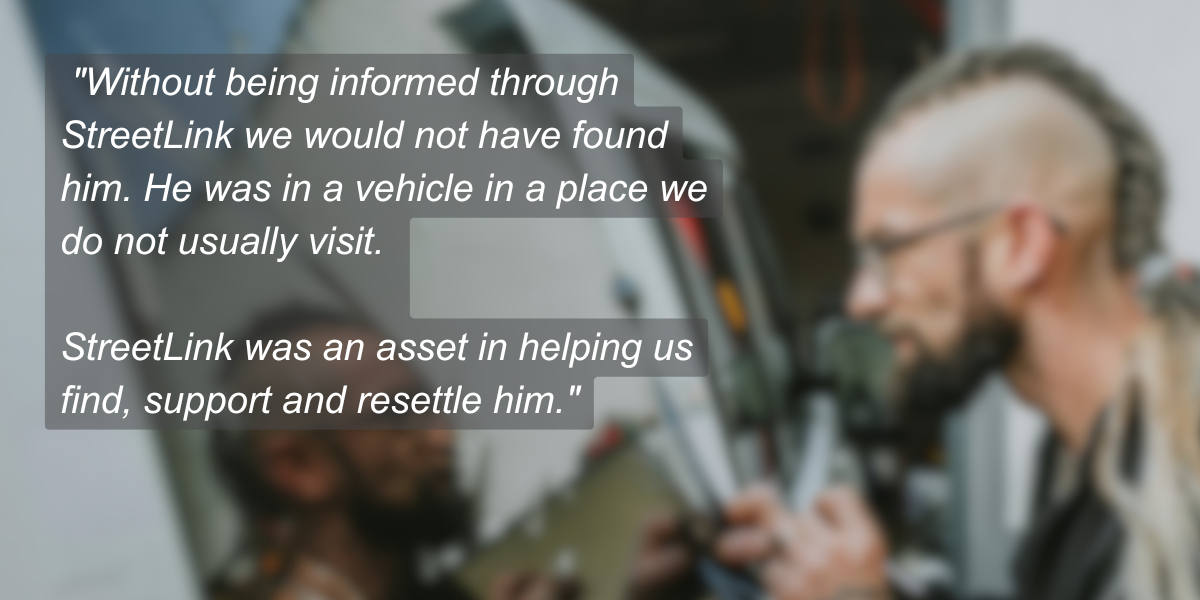 The outreach worker made it clear that without the StreetLink alert they would not have found him.
