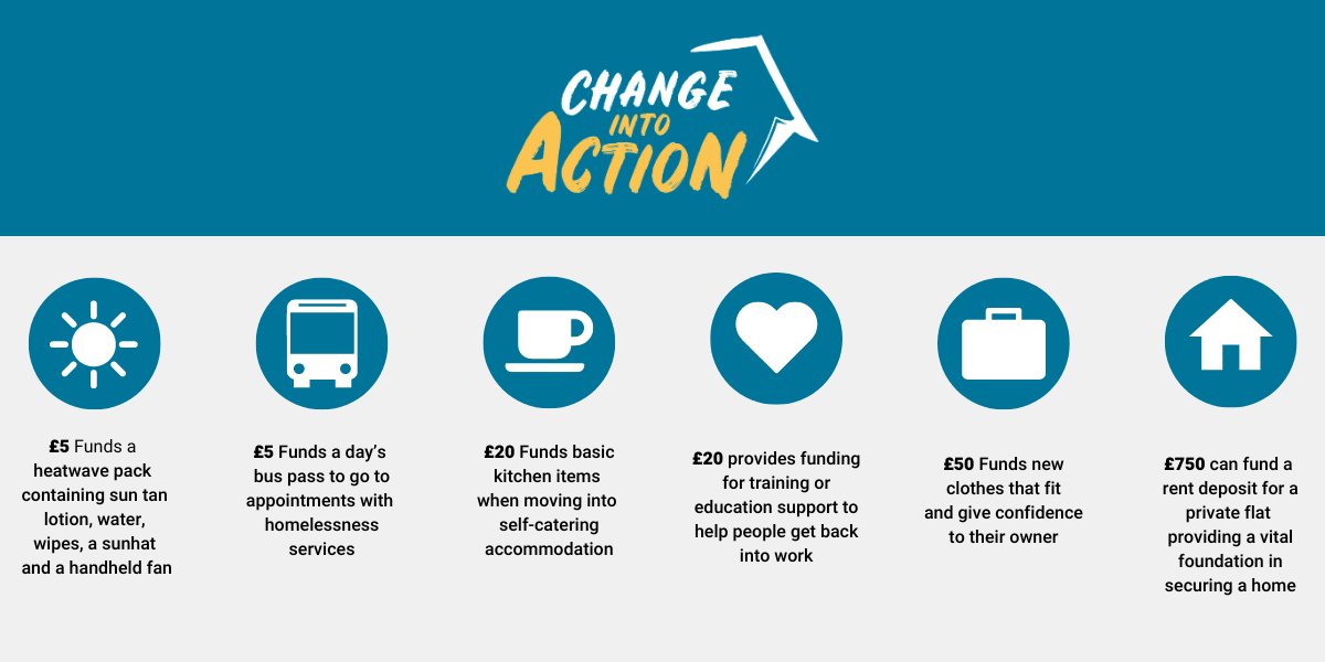 Change into Action is a regional alternative giving campaign that encourages people to make an online donation rather than giving money to people asking for change on the streets.
